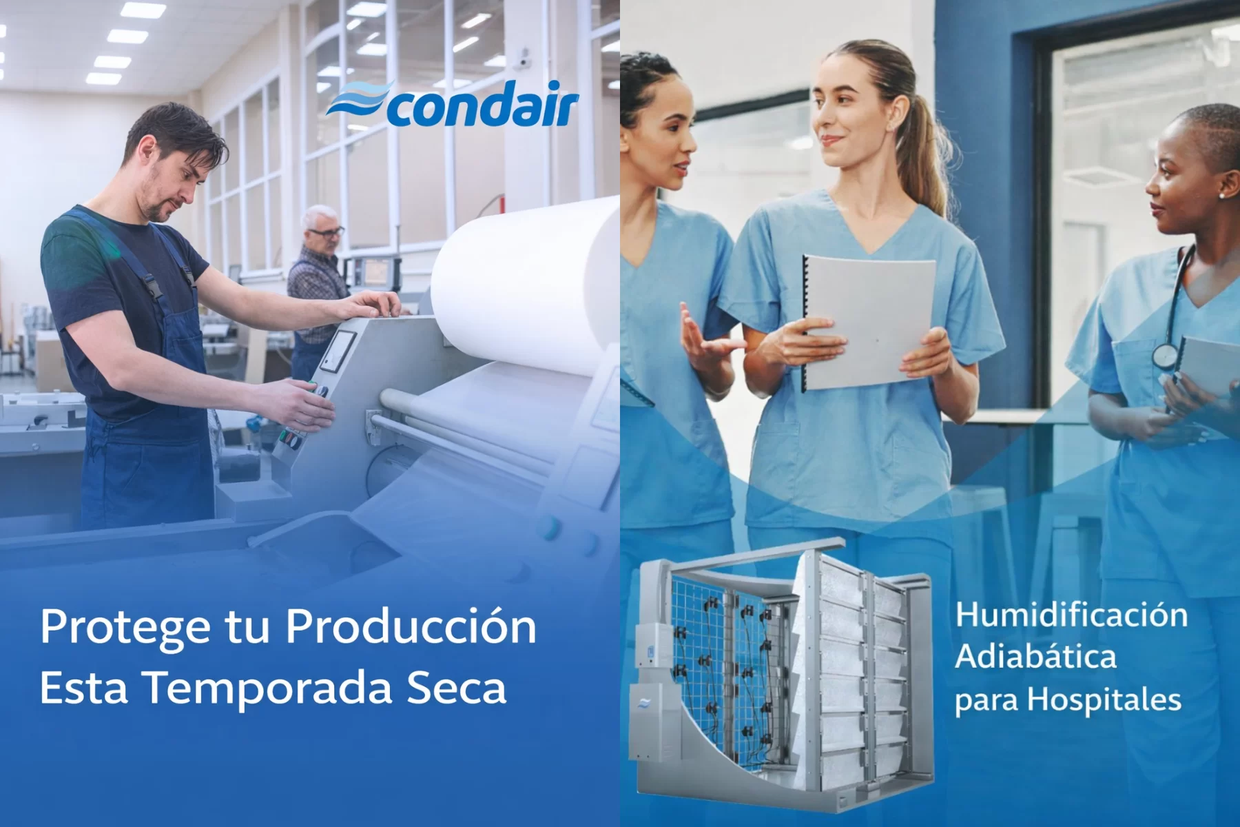 Condair fabrica soluciones de humidificación, deshumidificación y enfriamiento evaporativo, además de tratamiento de agua, controles y accesorios relacionados.