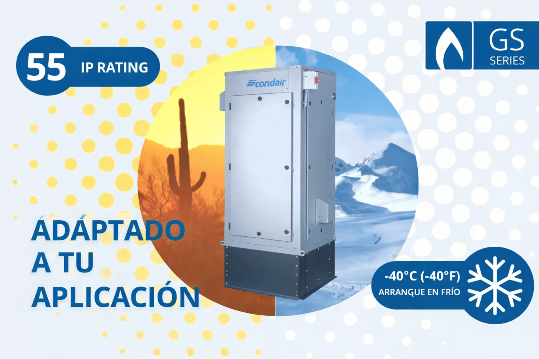 | GS | Humidificación por gas | Proyectos con estrategia energética basada en gas | Capacidad para cargas importantes |