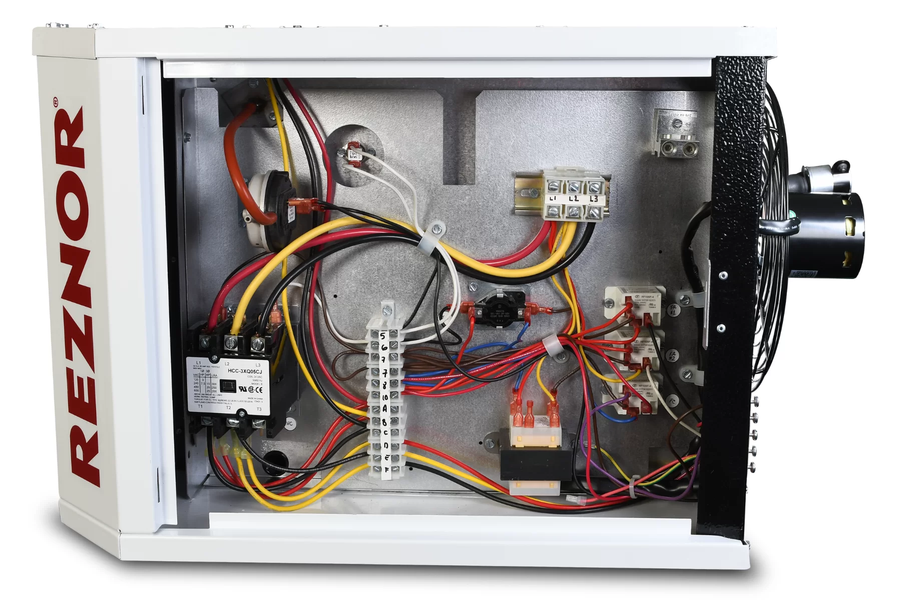 El calefactor eléctrico Reznor serie EUH es una unidad de aire forzado diseñada para aplicaciones comerciales, industriales y residenciales que requieren una fuente de calor limpia, segura y libre de emisiones.