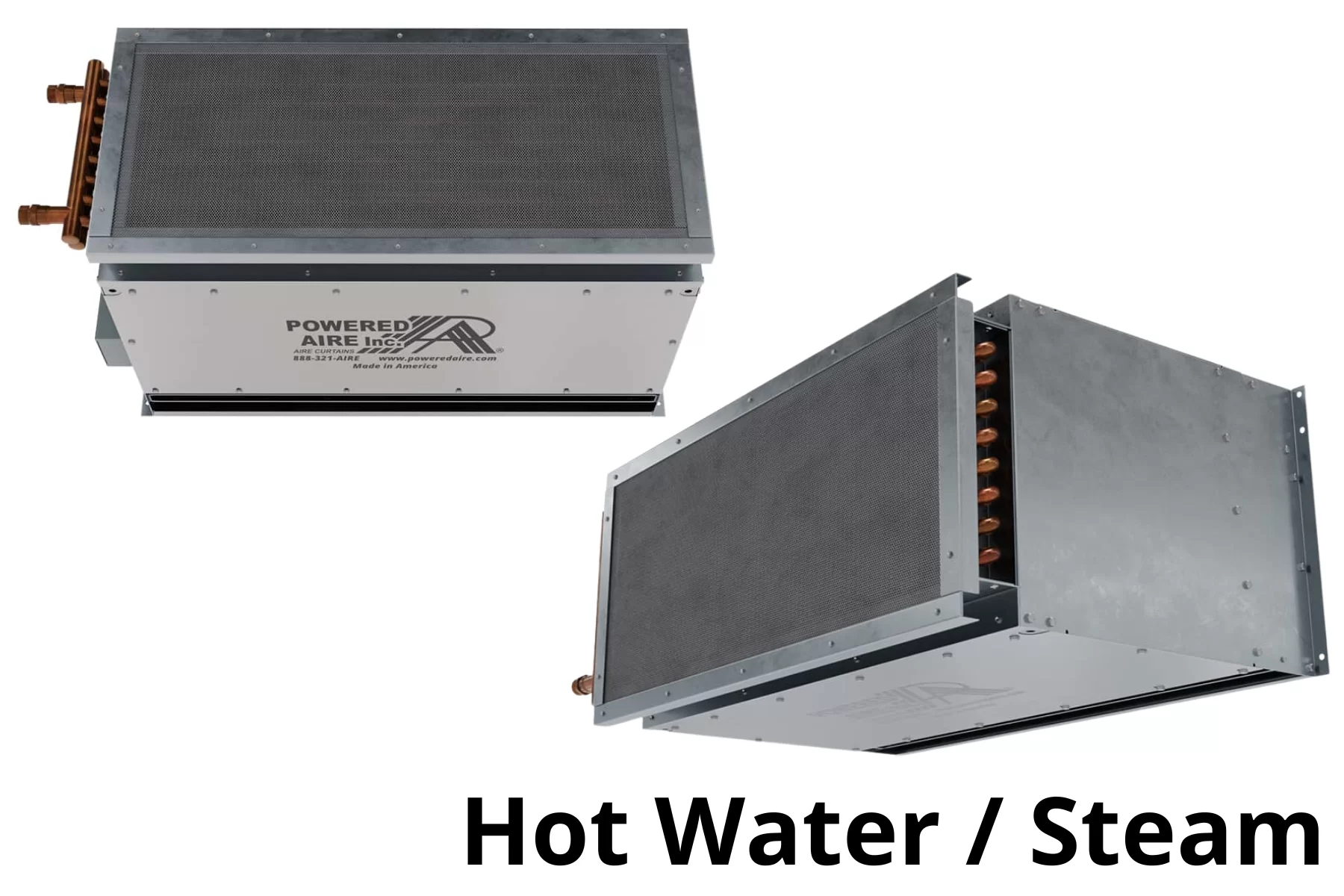 Versión con calefacción a gas indirecto, para aplicaciones que exigen mayor aporte de calor en la zona de puerta.