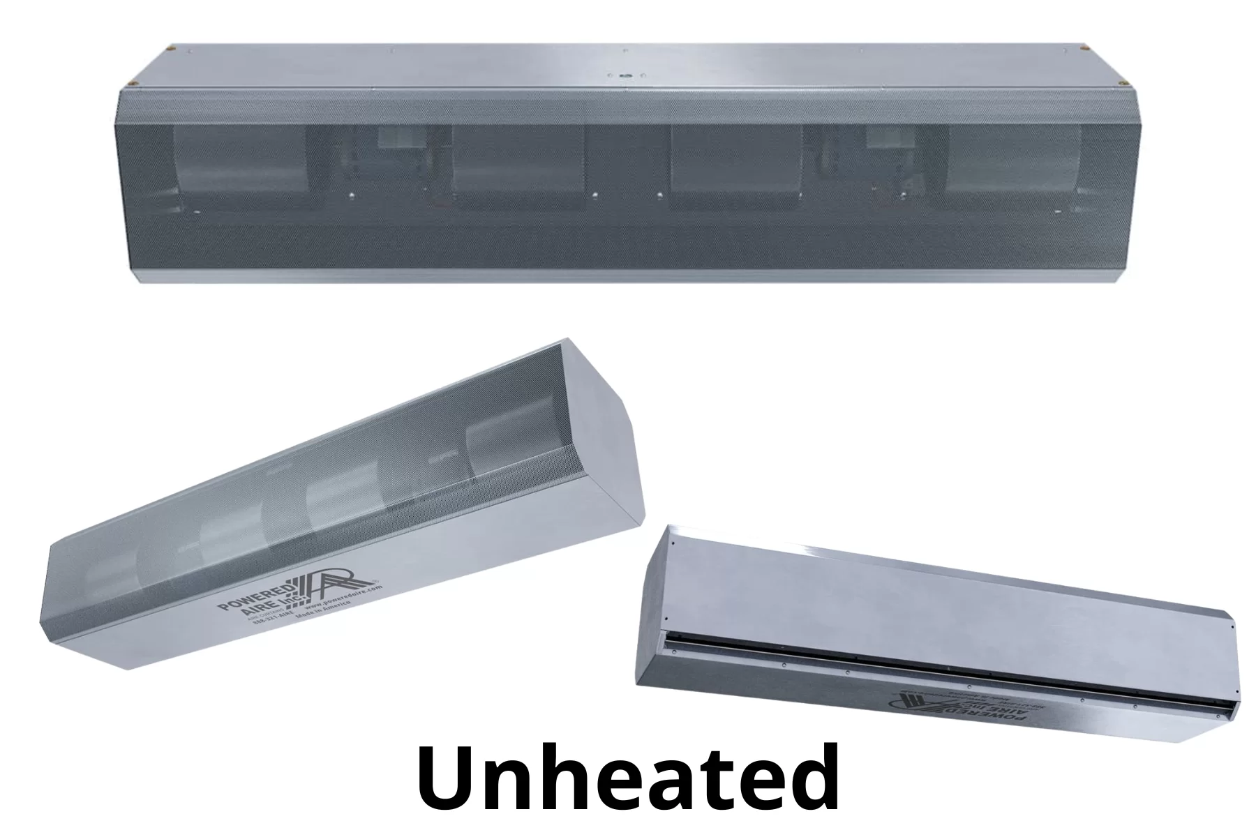 Este modelo unheated (sin calefacción) utiliza acero inoxidable 316 en gabinete, componentes internos y herrajes, lo que ofrece una protección muy superior contra óxido y corrosión frente a cortinas de aire convencionales.