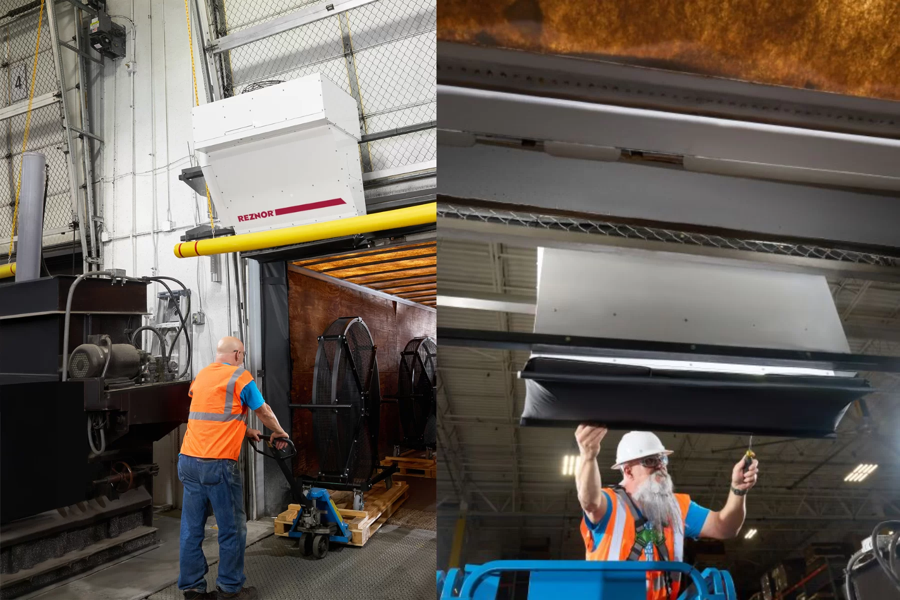 El Reznor DTH es un calefactor eléctrico industrial para remolques acoplados en andén diseñado para calentar rápidamente trailers fríos y hacer más eficiente y segura la operación de carga y descarga en centros de distribución, almacenes y operaciones logísticas. También cuenta con modo solo ventilación para recircular aire dentro de remolques calientes.