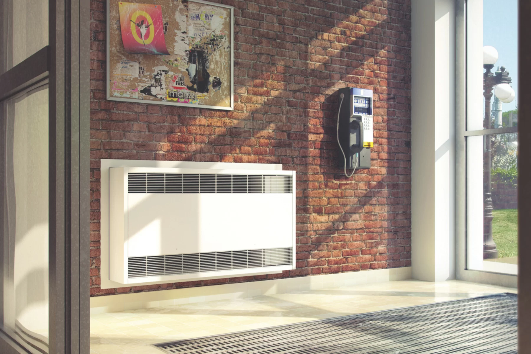 El EMC es ideal cuando buscas un calefactor eléctrico con mayor cobertura que un equipo residencial, y con opciones reales de configuración para edificio: puede instalarse en superficie, semi-empotrado o empotrado, y permite ajustar la dirección del aire para adaptarlo al flujo que necesita tu espacio.