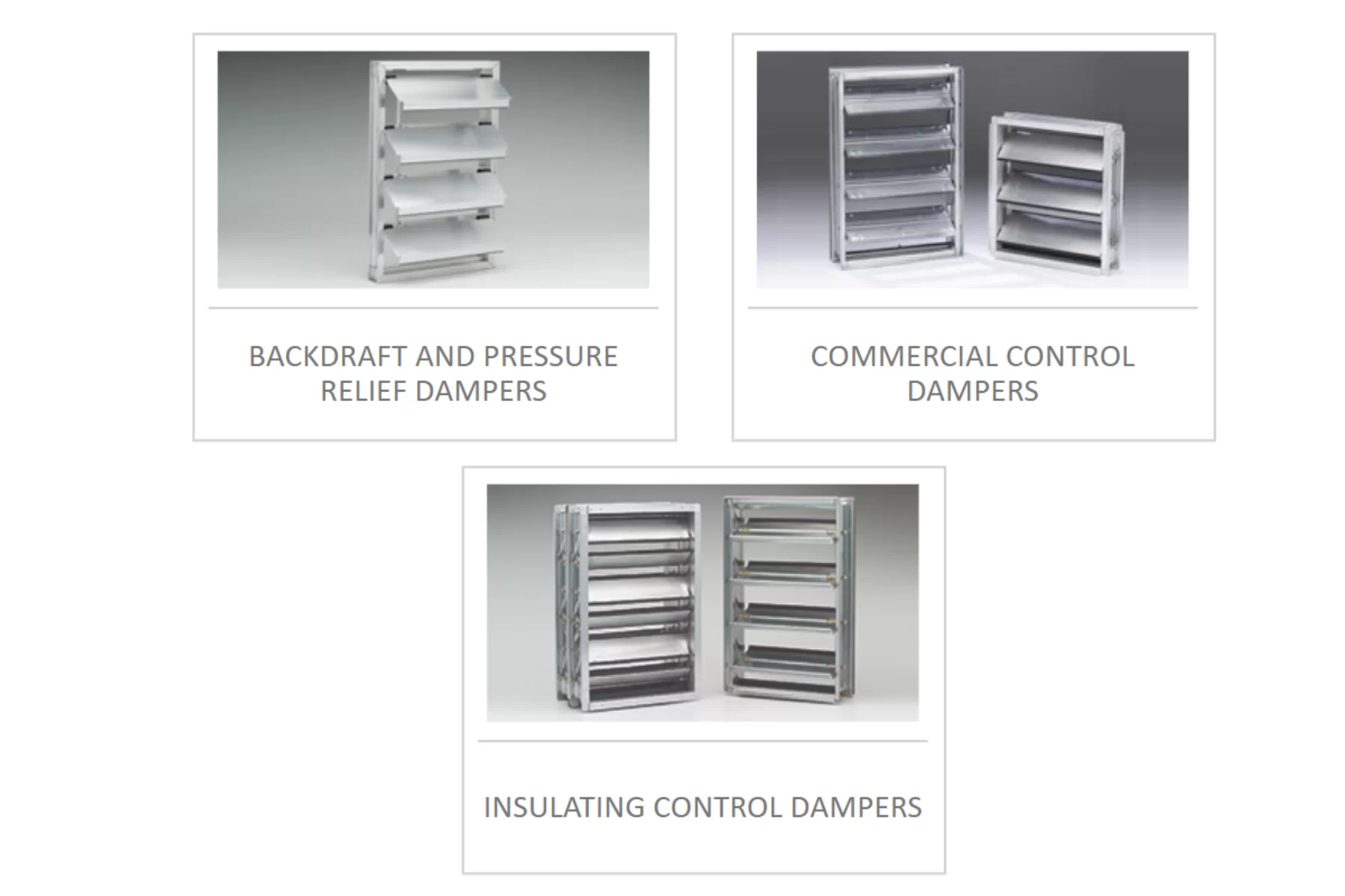 La categoría Control, Manual, & Backdraft Dampers de Ruskin agrupa compuertas para aplicaciones HVAC e industriales: desde operación ligera hasta uso industrial, cubriendo necesidades de control de flujo, balanceo manual y prevención de contraflujo (backdraft). Ruskin señala que sus dampers se construyen con enfoque en desempeño y se prueban conforme a estándares AMCA en su laboratorio, y que trabajan con materiales como acero galvanizado, acero inoxidable, aluminio y fibra de vidrio según especificación del proyecto.