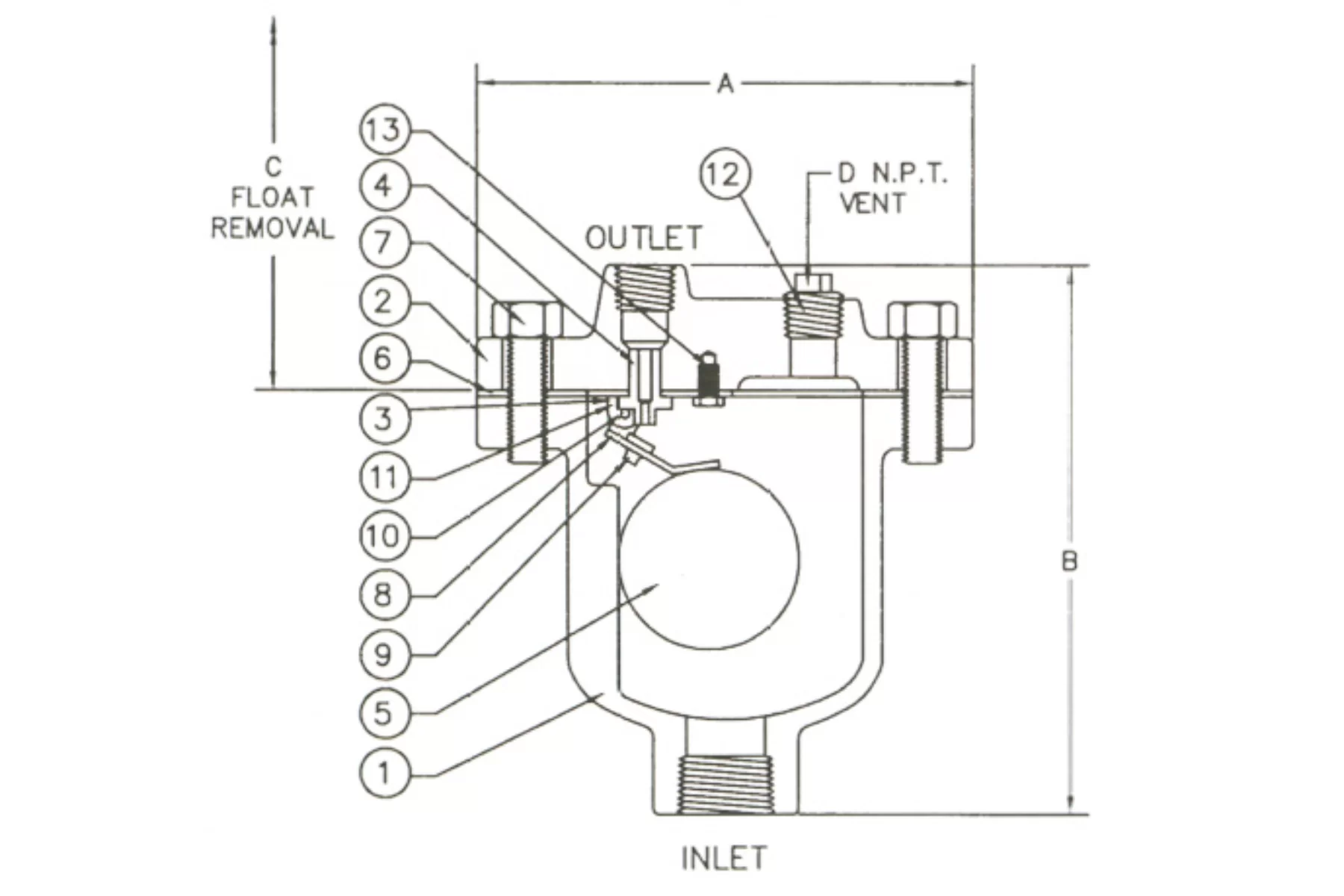 • con cuerpo de hierro fundido y componentes internos (flotador y asiento) en acero inoxidable.