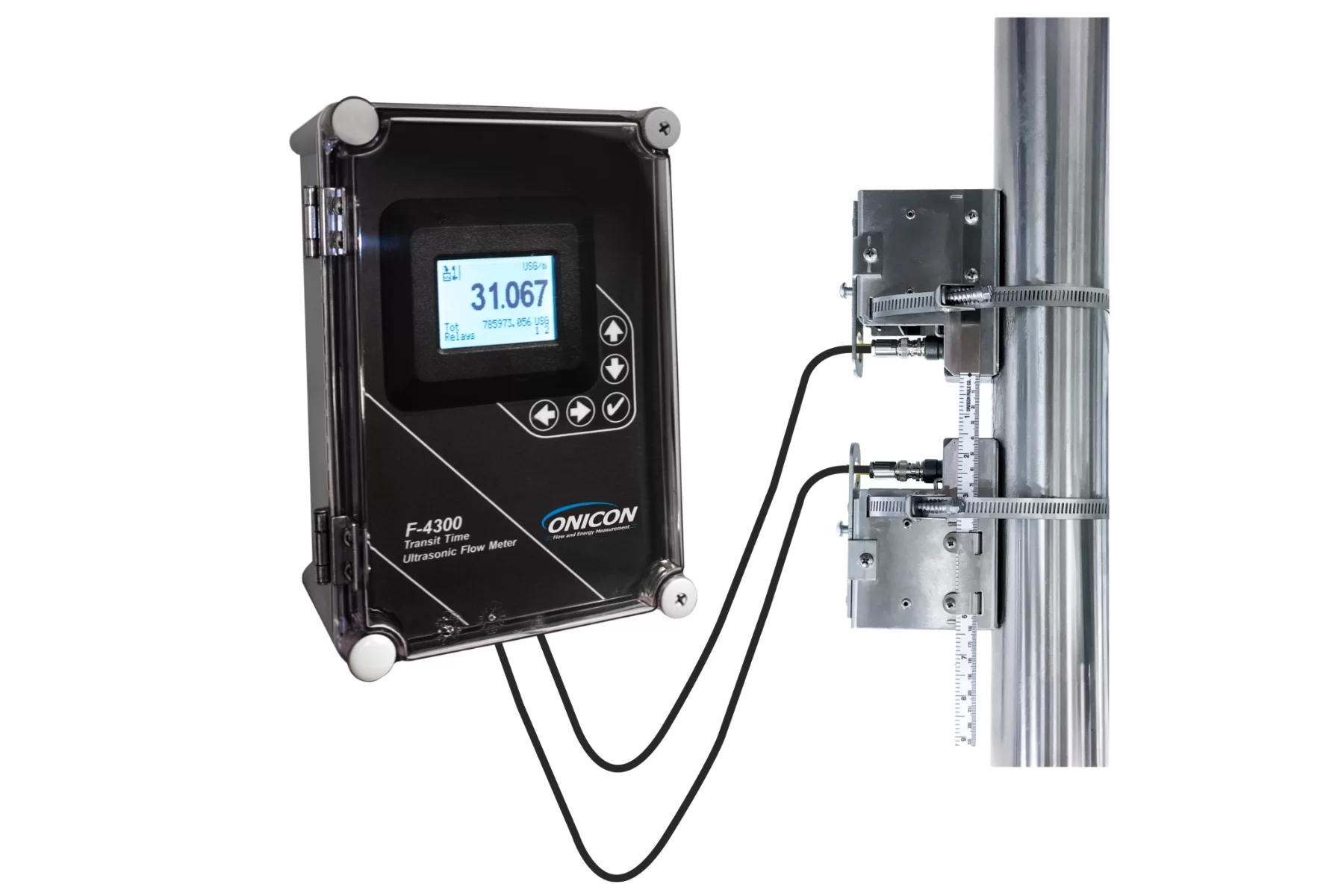El F-4300 utiliza transductores clamp-on y hardware de instalación pensado para simplificar el montaje en campo. ONICON indica que es ideal para medición de flujo hidrónico con enfoque no invasivo, especialmente en sistemas existentes donde no conviene perforar, cortar o intervenir la línea de manera intrusiva.