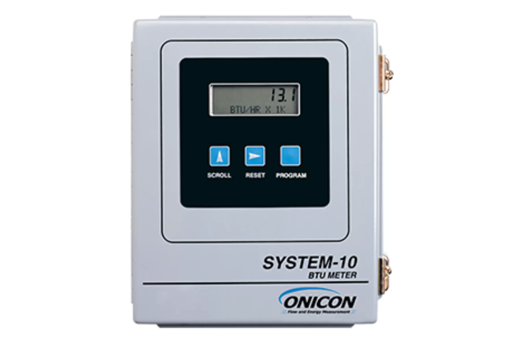 El ONICON System-10 es un BTU meter microprocesado diseñado para entregar datos completos de energía, flujo y temperatura tanto en el display frontal como por una interfaz serial opcional. ONICON indica que también puede suministrarse con salidas analógicas opcionales para energía, flujo y temperatura, y que es una opción adecuada para integración con sistemas de control gracias a la disponibilidad de tarjetas de comunicación BACnet, MODBUS, Johnson Controls-N2 y Siemens-P1.