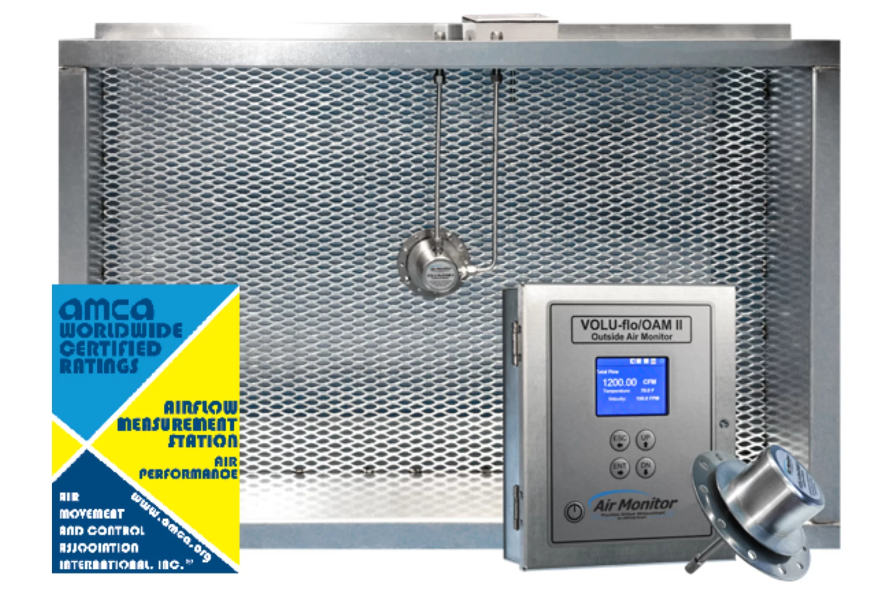 Las OAM II Airflow Stations pueden suministrarse con sensores montados de fábrica sobre una capa de metal expandido de resistencia fija dentro de una carcasa galvanizada, lo que en muchas aplicaciones permite pre-calibración de fábrica para operación plug-n-play.