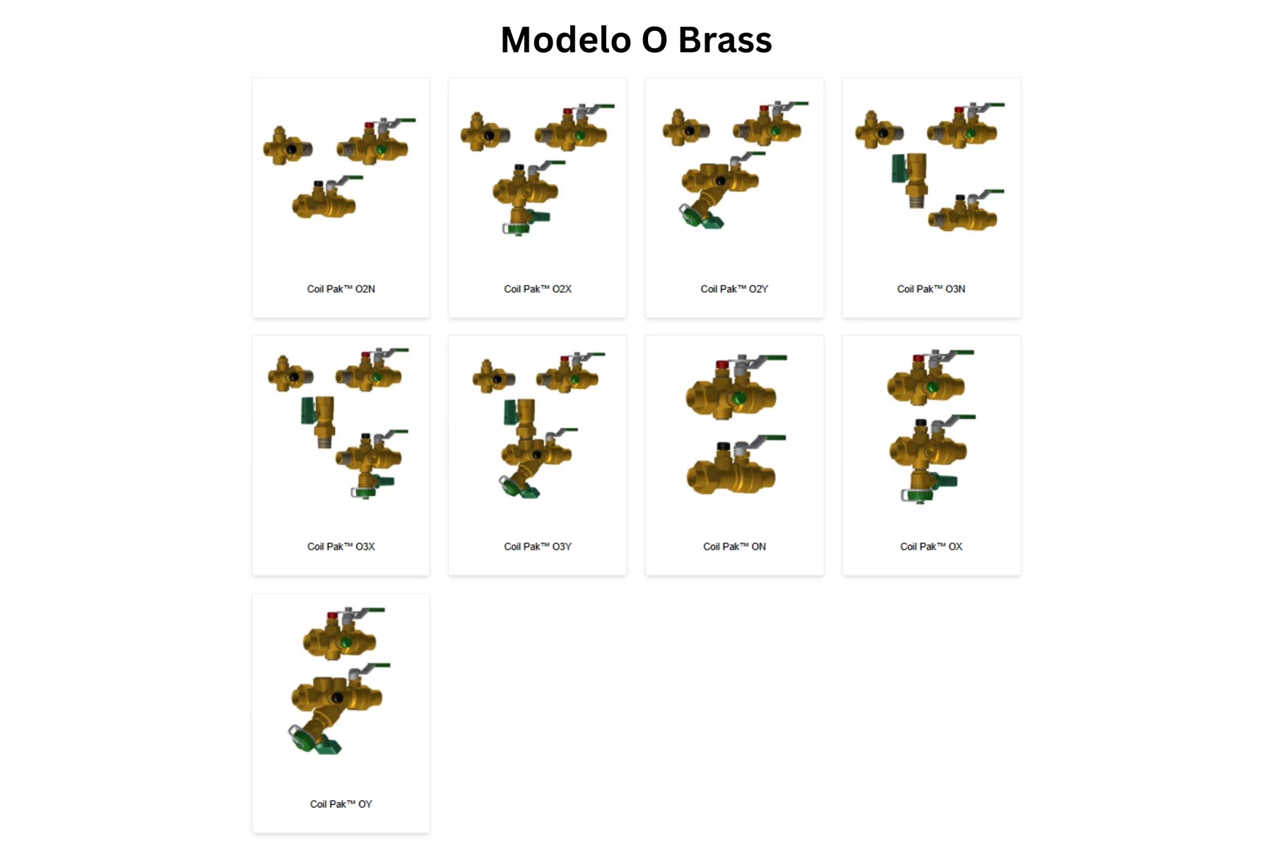 La familia Modelo O Brass incluye los modelos O2N, O2X, O2Y, O3N, O3X, O3Y, ON, OX y OY. Son Coil Paks con calibrated manual flow control valve y modified venturi, lo que los vuelve atractivos cuando el proyecto busca balanceo manual más medición dentro del mismo arreglo. En la configuración O2Y, el retorno integra UltraXB Orturi™ XB con dos puertos de prueba y memory stop, mientras que el suministro utiliza UltraY™ UY con strainer, ball valve, unión, puerto de prueba y blowdown/drain valve. La serie trabaja a 600 WOG y 325°F, con precisión de ±3%, filtro removible, modified venturi, manual air vent y tamaños de ½” a 2½”. El rango de flujo publicado es de 0.18 GPM a 97.00 GPM según el tamaño.