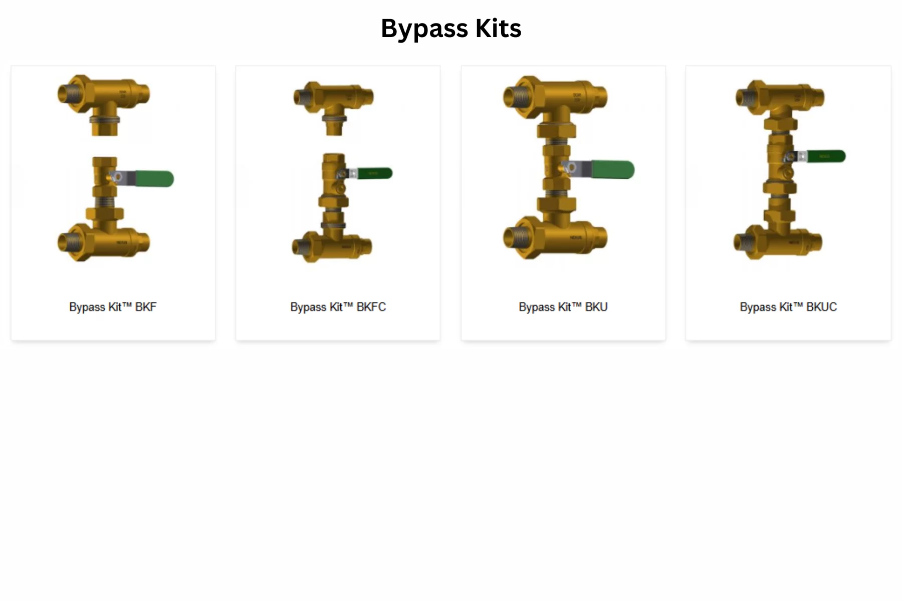 La línea se compone de cuatro modelos principales: BKF, BKFC, BKU y BKUC. Todos pertenecen a la misma familia, pero cambian en la configuración del bypass, el tipo de válvula integrada y la disposición de tees de unión o unión fija.