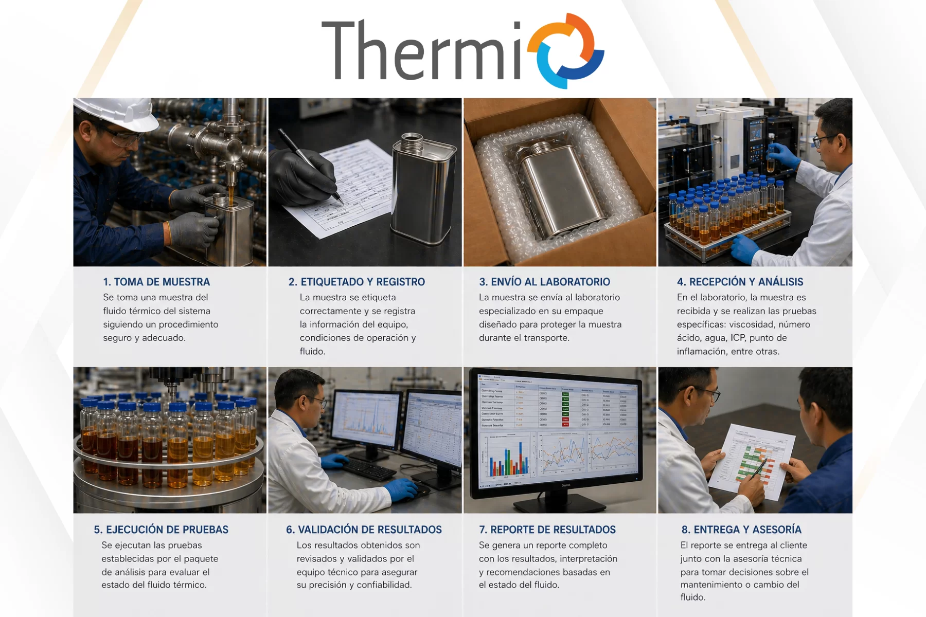 El servicio de Análisis de Fluido Térmico Thermi está enfocado en empresas que necesitan cuidar sus sistemas térmicos, reducir riesgos y tomar decisiones técnicas con base en información confiable.